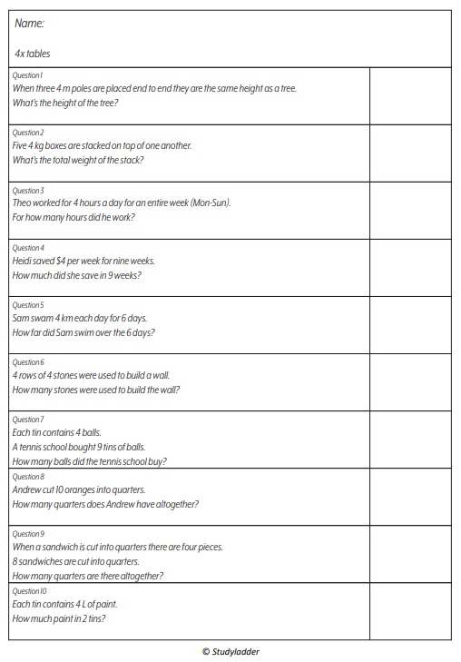 4x tables (problem solving)