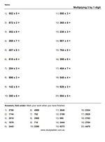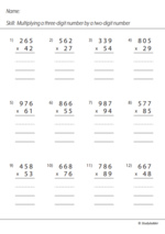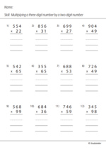 - Multiply three and four-digit numbers by two-digit numbers