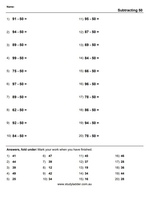 - Subtracting from 100 - problem solving