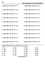 - Mental strategies for addition (split strategy)