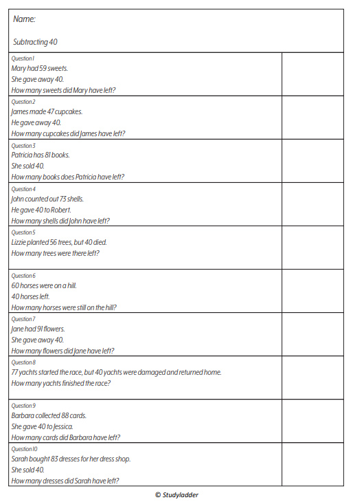 Subtracting 40