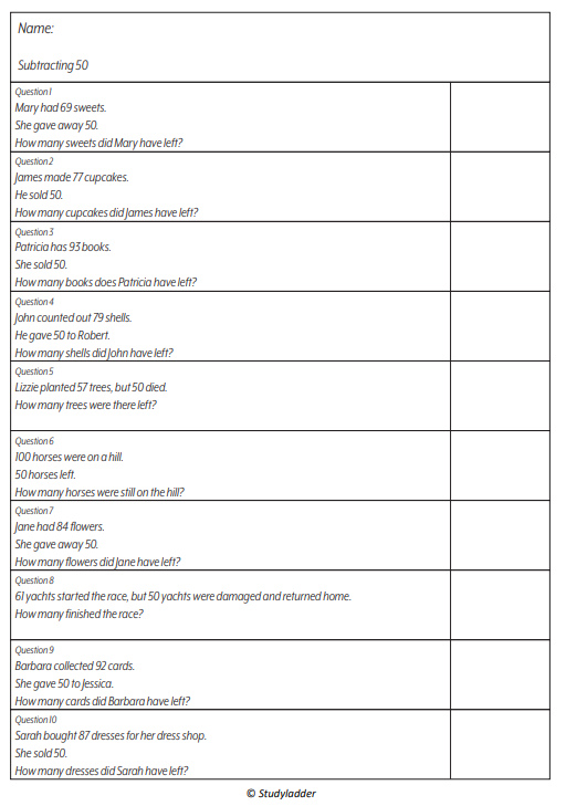 Subtracting 50