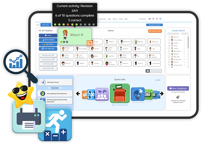Engaging online activities and reward systems developed by highly experienced educators to motivate students and improve results.