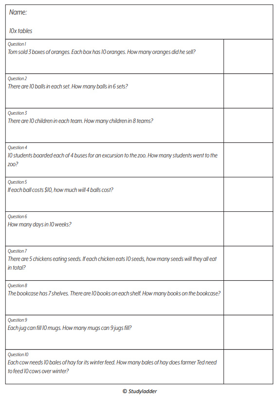 10x tables (problem solving)