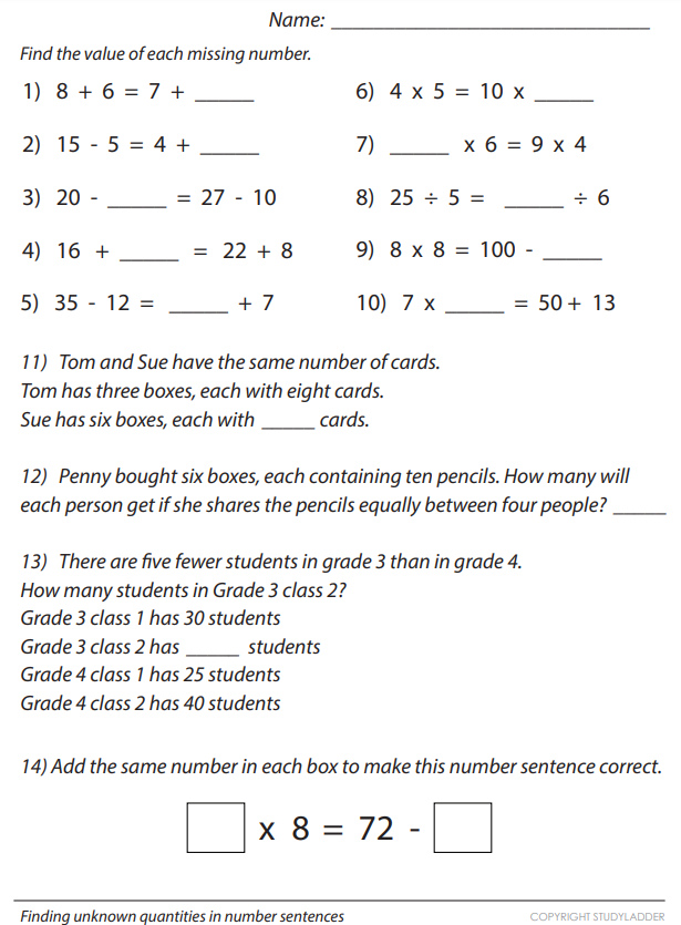 Finding unknown quantities in number sentences