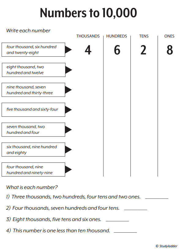Place value - thousands, hundreds, tens and ones