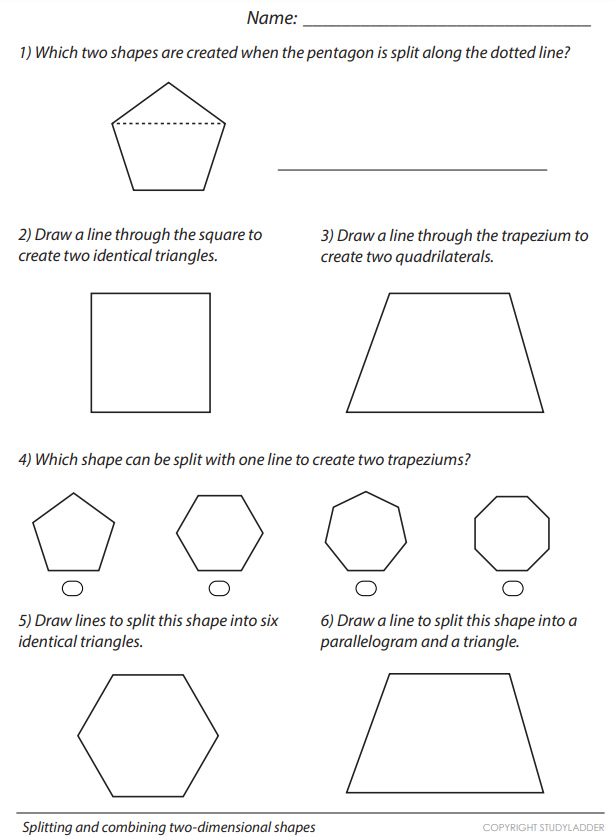 Splitting and combining two dimensional shapes