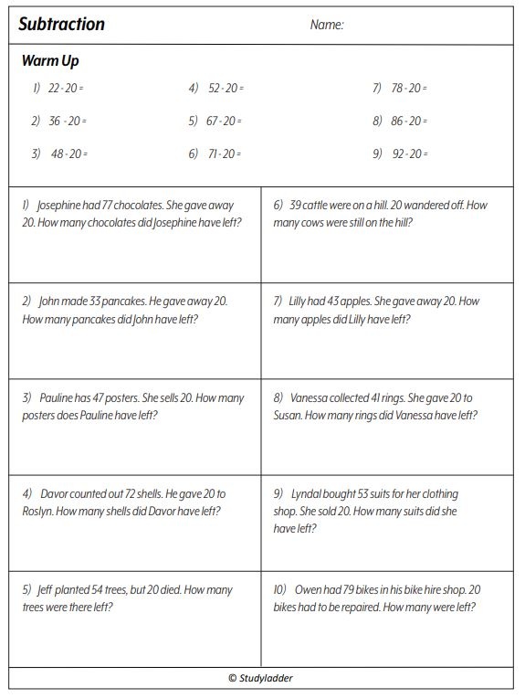 Subtracting 20 (problem solving)