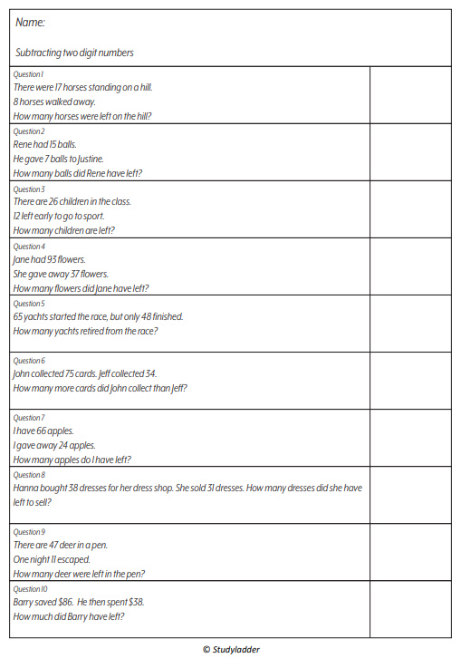 Subtracting two digit numbers